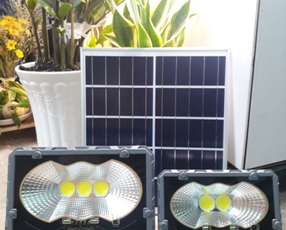 Đèn pha COB năng lượng mặt trời được thiết kế với các mẫu 3 mắt và 2 mắt